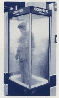 早在1985年,GORE-TEX服装便开始在风暴屋接受半小时的防水测试,在测试中,一个装有湿度传感器的人体模型承受了每小时3英寸的模拟倾盆大雨。如果人体模型的传感器在这段时间内没有记录任何水分,GORE-TEX就会为此款产品挂牌“不妥协的防水装备”。