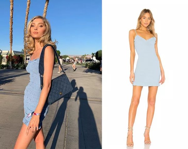 Elsa前两天在Coachella就以一身蓝色短款连身裙现身,一条简单的Slip Dress就秒杀音乐节上随处可见的各种夸张裸露打扮,一秒变身甜心芭比。