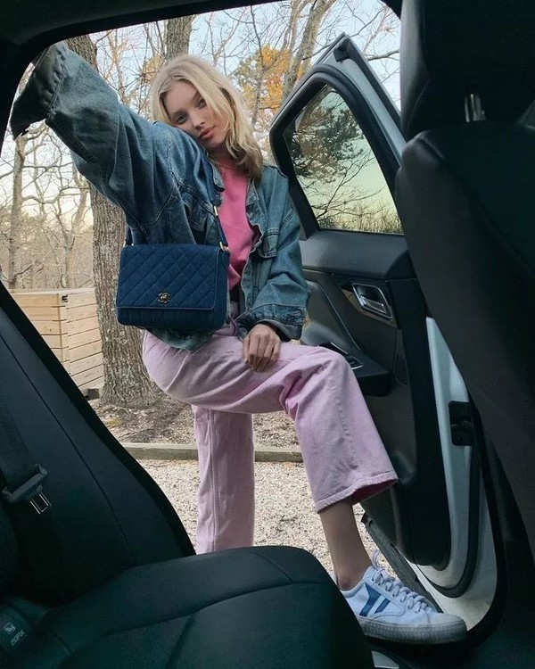什么牛仔布材质,手拎款设计,都只是她Chanel收藏中的冰山一角。而且有没有发现,每次拎不同的包,Elsa都会在造型中注重配色的呼应,穿什么衣服拎什么样的包。