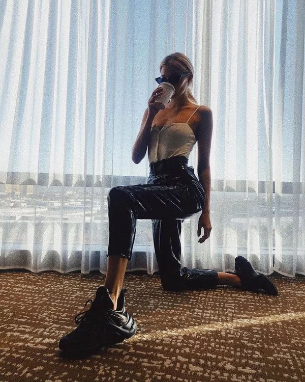 不难看出,Elsa极其擅长将运动风混搭化,把普通的运动单品穿出摩登感。而且技巧相当实用,基本都是运动风格装搭配摩登设计的裤装为原则,不怕你学不会。