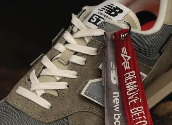 首次联乘鞋款以经典的574鞋型为基础打造,鞋身以灰色调为主,整体由麂皮搭载网眼材质构成,注入机能性CORDURA ®防水尼龙,便于户外穿着。鞋舌及鞋后跟分别加入Alpha Industries「Flying A」标志及New Balance「NB」标志,中底使用ENCAP缓震技术,鞋垫则选用同系列的橘色,配上军字印花,以示呼应。此次联乘鞋款附赠一个防尘袋,并配有多款配饰可供替换,其中包括联乘绸带及「N」字魔术贴,标志性的Alpha Industries绸带加上双方LOGO,以红灰配色作点缀,可系于鞋身;最后鞋两侧的银色3M「N」字标志则以魔术贴的形式出现,可用附送的卡其色贴章替换,重新诠释经典鞋款,彰显军事运动风。