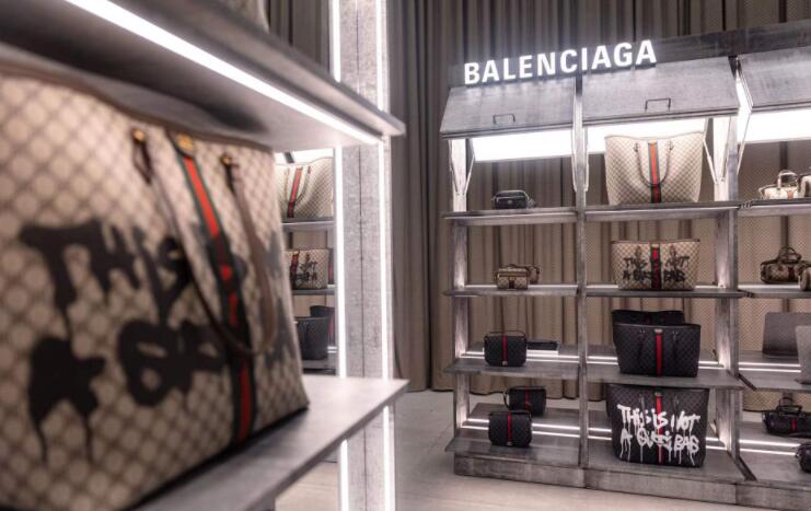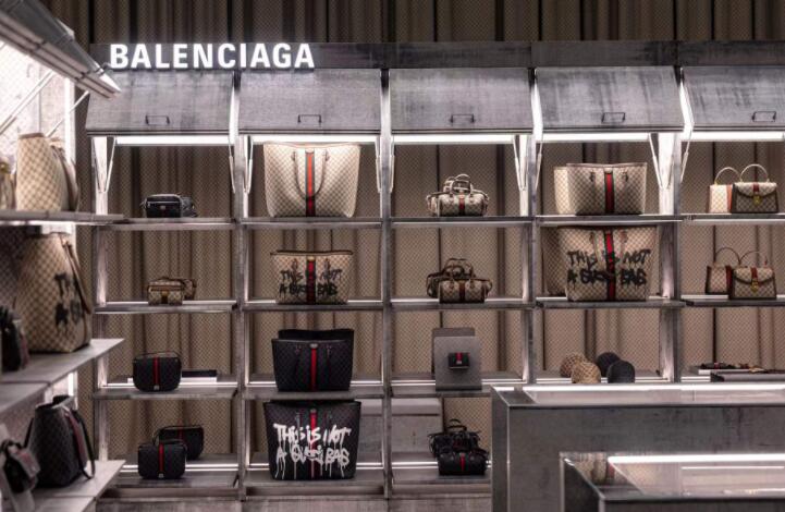 在全球 74 个 Balenciaga 线下限时体验空间中,「THE HACKER PROJECT」系列借由别具一格的布局和陈列设计进行展示。该系列通过 Balenciaga 的产品重新演绎了 Gucci 的经典元素,以此大胆质疑时尚对于原创、伪造与挪用的看法。