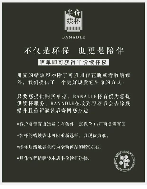 用完的蜡烛容器,它们提供半价的有偿续杯服务,不仅香味可以重新选择还能打个对折,购物+为环保作贡献一步到位,非常有想法了~