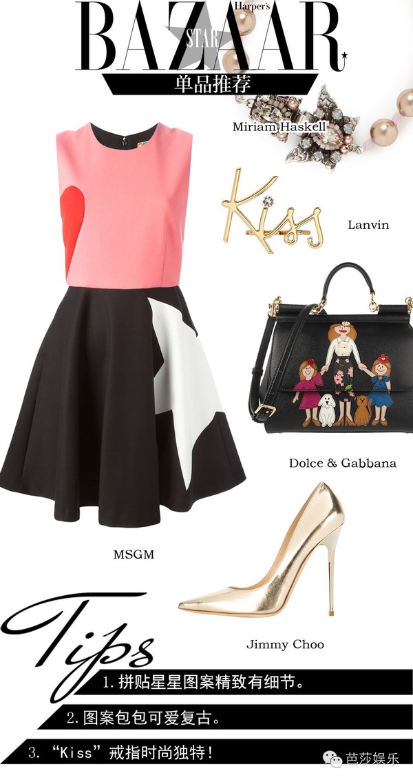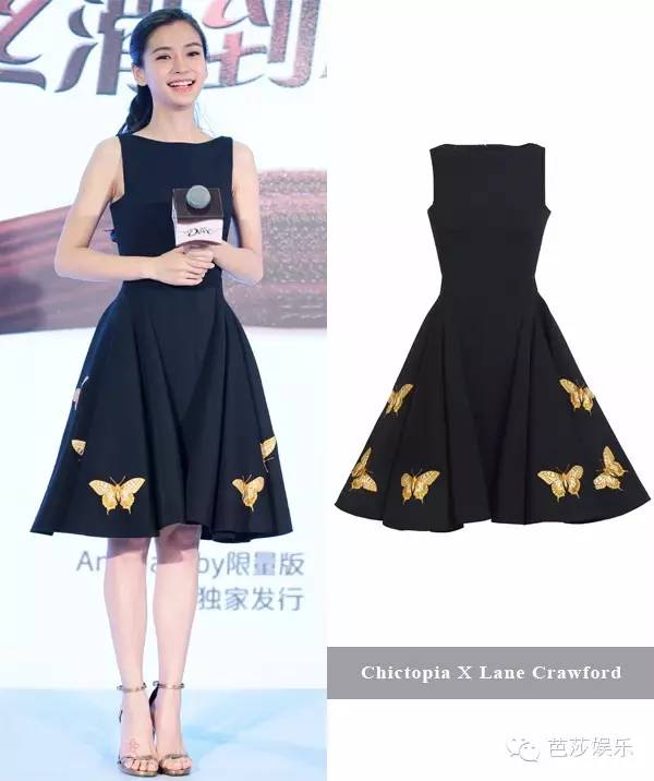 Baby 当天穿了一件连衣裙,上面有金色蝴蝶装饰,让平淡的裙子一下子变得有趣起来,金色高跟鞋也跟蝴蝶的颜色呼应