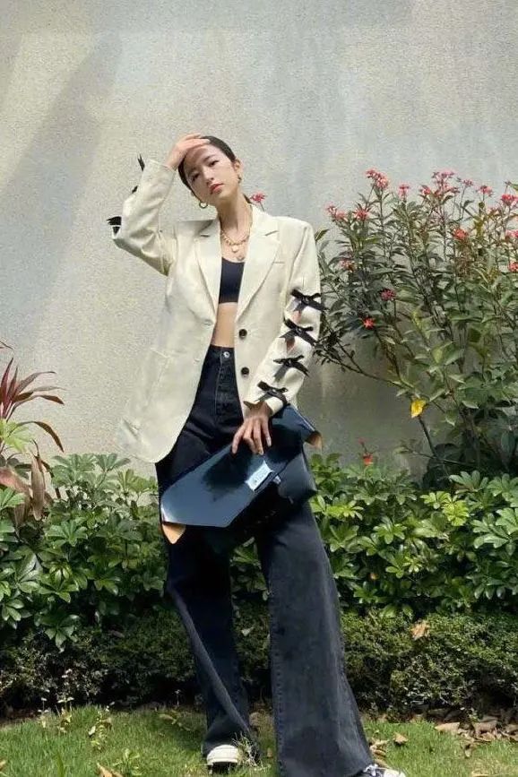 看似很难驾驭的西装,时装博主 Tiffany Hsu给我们示范了正确的穿法,用Bra内裤作为打底,与其他单品叠穿层次感满满,营造出满屏皆是大长腿的既视感。