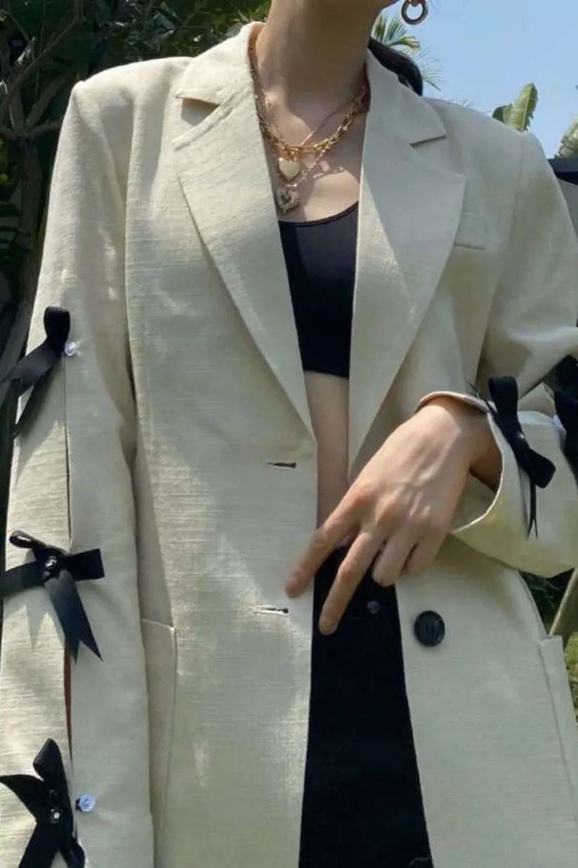 如果想要轻微露肤,那么这款西装外套绝对不容错过,腰部的镂空设计和质感满分的金属小孔自带吸睛buff,非常适合腰身纤细的姐妹。