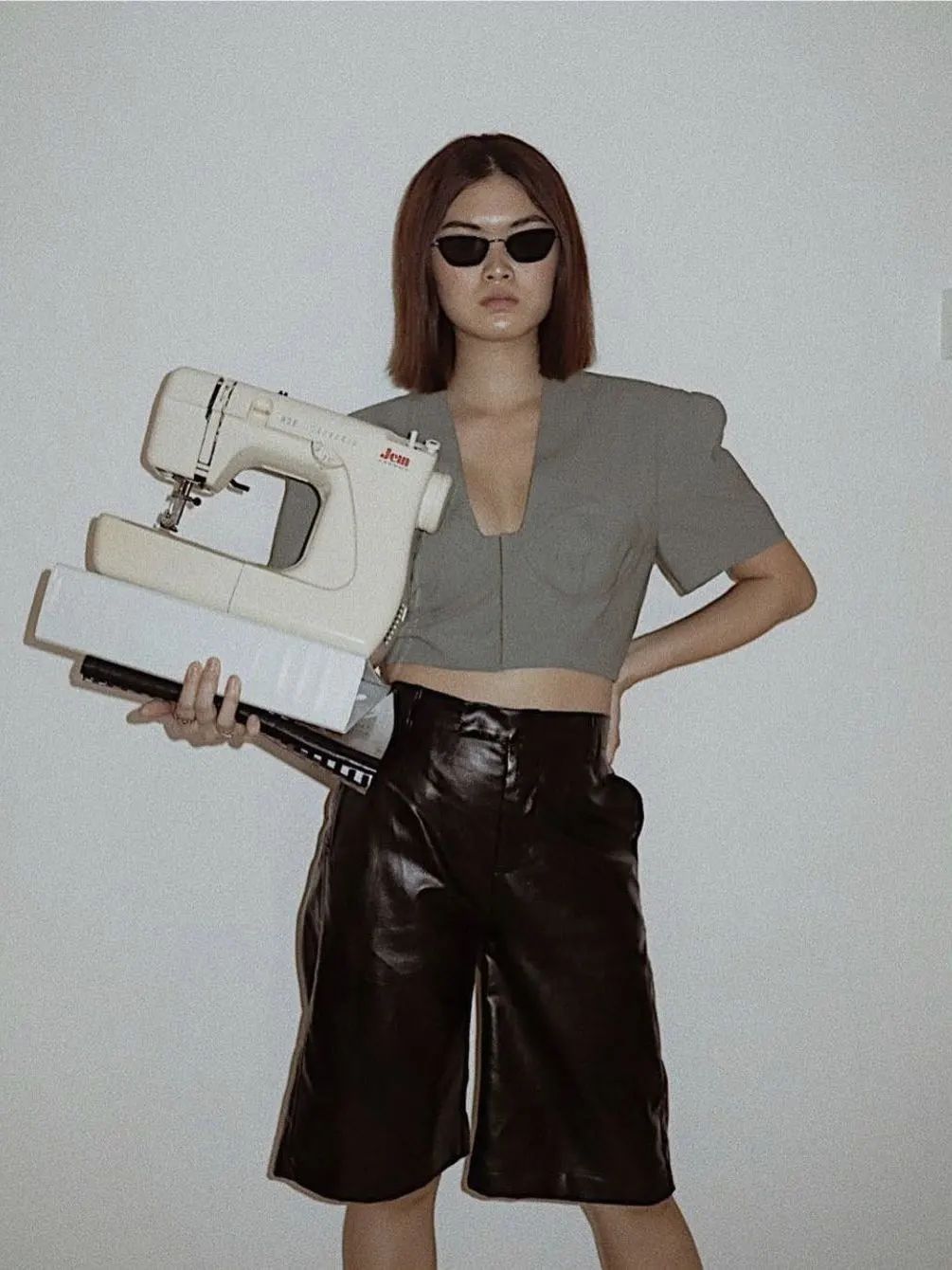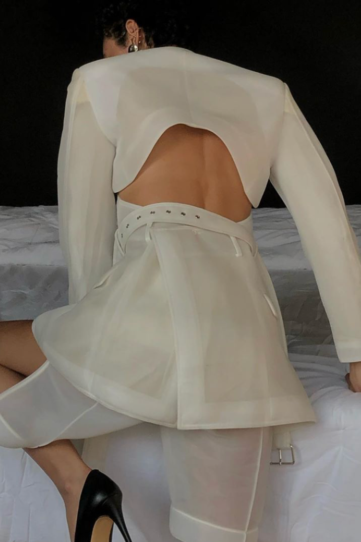 觉得皮质太闷热的,还可以试试西装面料,刚好可以露出性感的蝴蝶骨,时装博主Camole已经率先打卡。