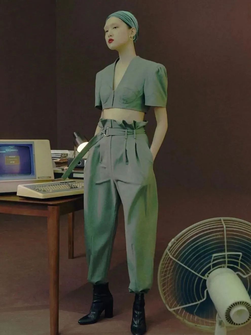 可以凸显腰线,让身材比例看起来更好,显腿长腰细,在强调阳刚和中性美的同时,也不忘展现女性的曲线和身材比例,刚柔并济。