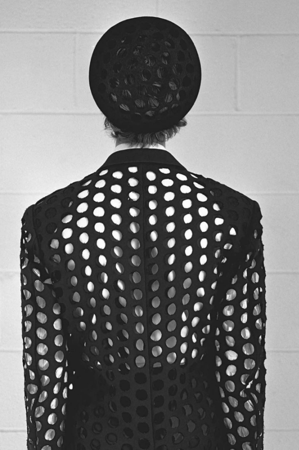 细节也处理得非常巧妙,作为灵感来源的波尔卡圆点和西装内部的细条纹都很有几何的美感,小小心思就可以看出设计师的不一般。
