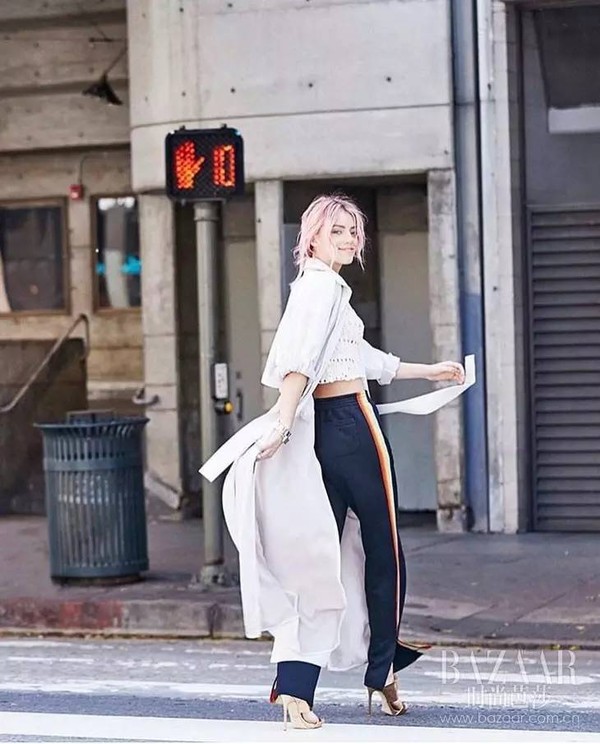 Bella则是选择了Adidas家的运动套装来呼应奥运风潮,里面搭了一件黑色抹胸,玩转运动和性感~