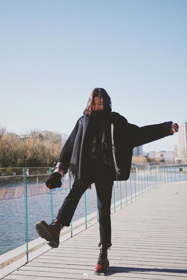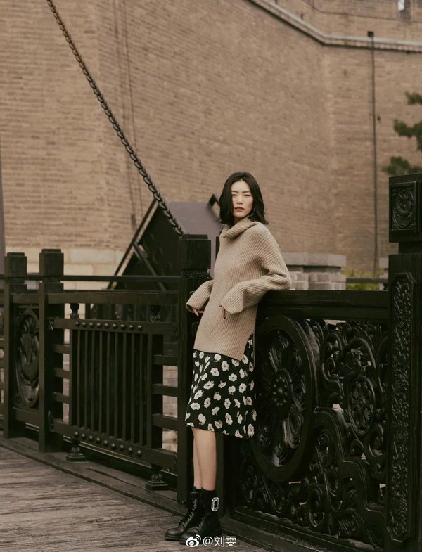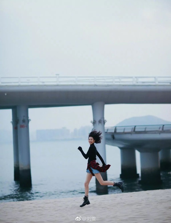 抬起一条腿拍摄的话,注意上半身也要有相呼应的做法,比如像刘雯一样抬另一侧的胳膊,这样在视觉上更平衡,也更有趣味性。