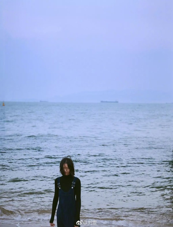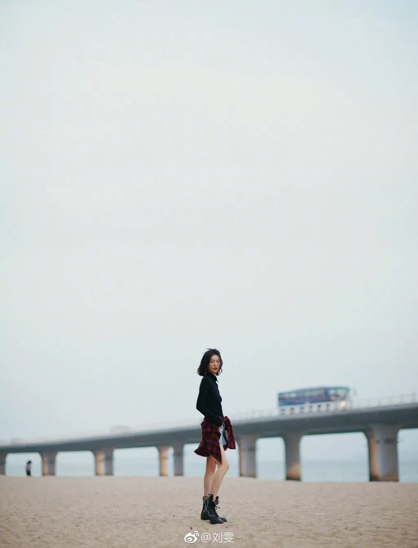 咱们暂且先不说刘雯本身身高就高这个问题,我们就说拍摄技巧。技巧就是:人物只占照片的下三分之一。照片人物上面的留空一定要高,也不是说好无界限,抓取好比例就可以。