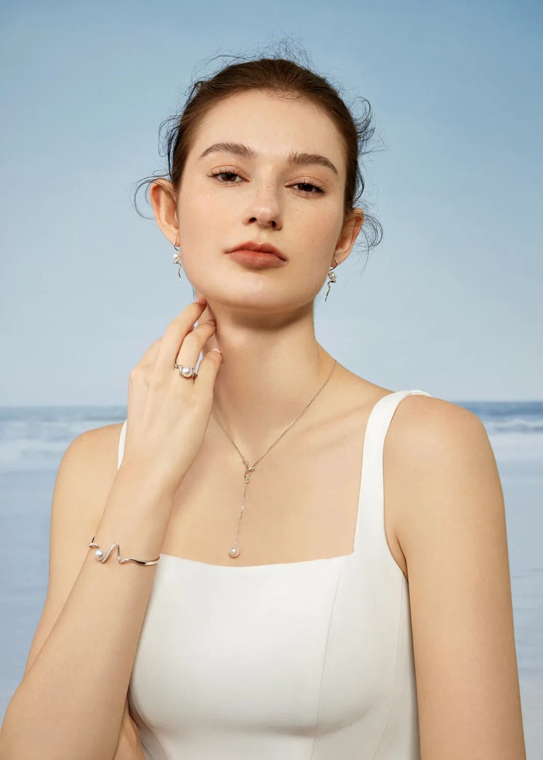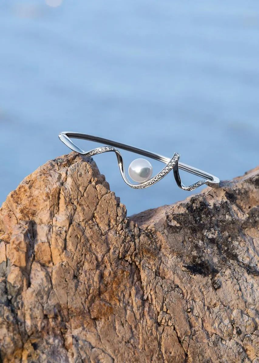 原创设计海浪系列灵感来源于设计师从家中看到的海面骤现的「白头浪」,表面平静,实则底下波涛汹涌,危机四伏,正如独立女性成长的心路历程,尽管面临无数困难与挑战,表面仍云淡风轻,一步一步地去应对瓶颈与问题,以无畏之姿迎接生活与工作的挑战。设计师将海浪形态具象,幻化成曼妙的18K金镶钻曲线和珍珠。