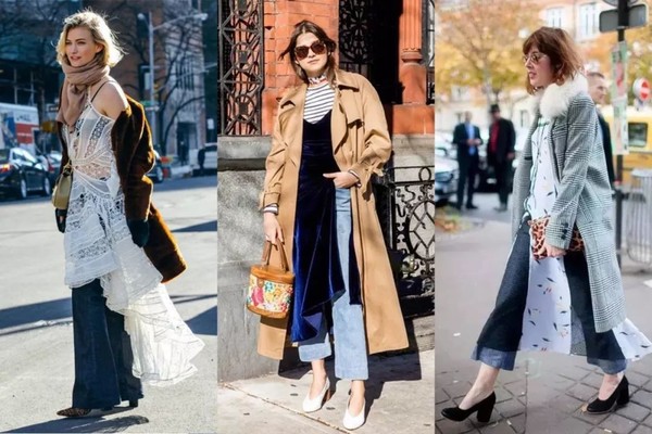 没错就是Dress over Pants,在内搭与外套之间叠穿一条裙子,许多博主早就get了这个让冬装灵动的方法。