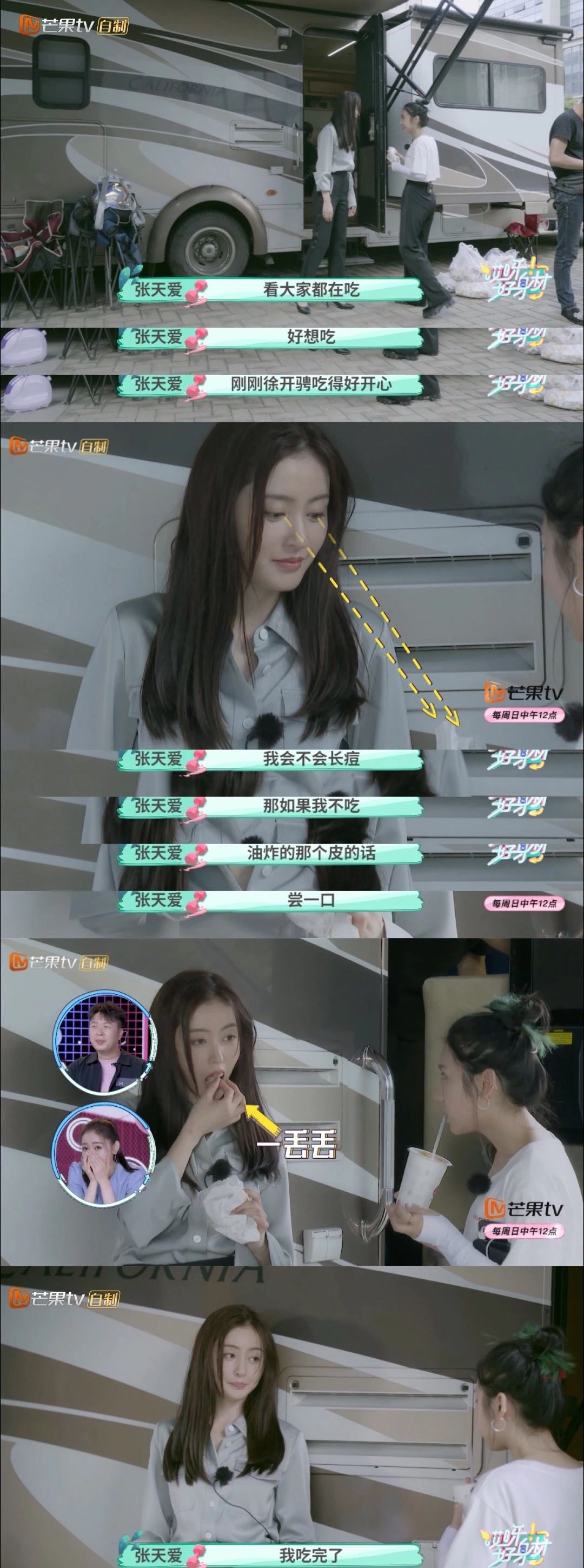 在饮食上注意不仅可以hold住完美身材,还能保持皮肤的无暇状态。张天爱真的skr狠人,把炸鸡的皮去掉再拨开吃里面的鸡胸肉,即使自己很爱吃炸鸡也依然只吃了一口,就为了不长痘,保持紧致的上镜肌肤,也要对自己严格要求。