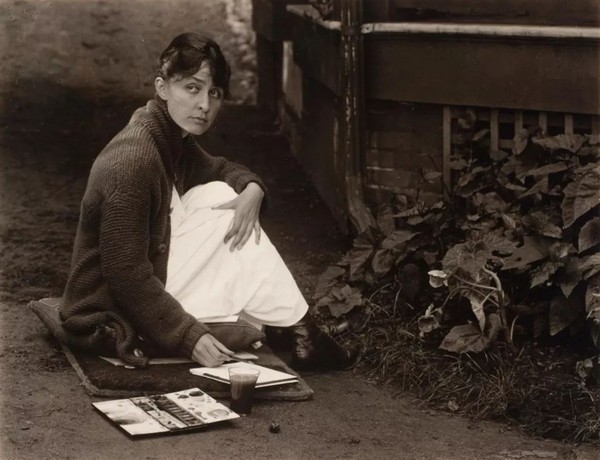 阿尔弗雷德·斯蒂格里茨《Georgia O’Keeffe with watercolor paint box》,1918年