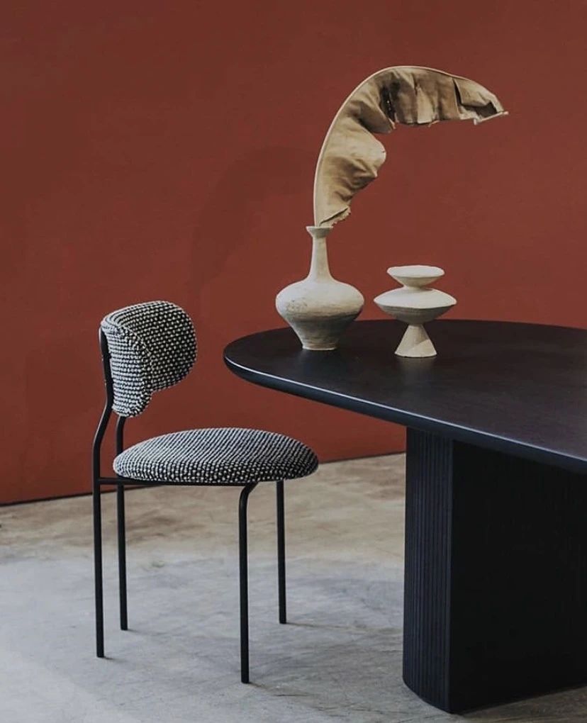 这里的每件家具都是来自GUBI,GUBI创立于1967年,是丹麦国宝级家居品牌。胡桃木餐桌、Beetle Chai、Pacha Chair和藤编椅都是很有代表性的作品。Pacha Chair的样子看着就很舒适。