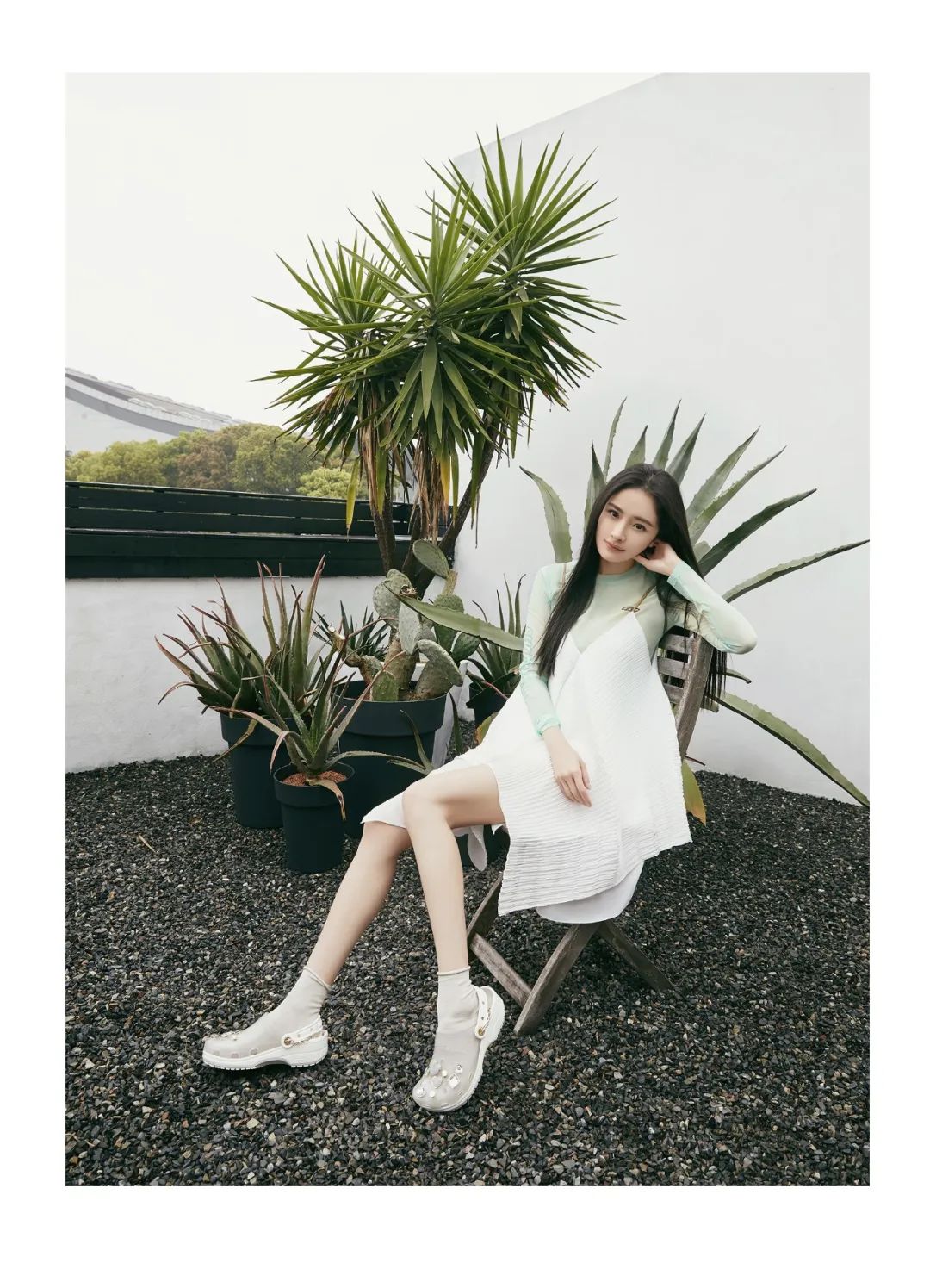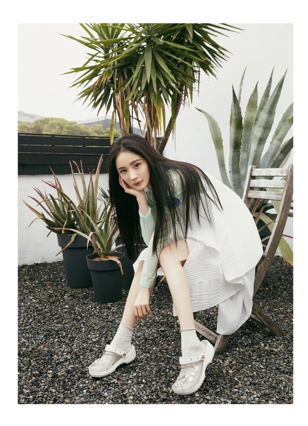 作为Crocs的代言人实力肉眼可见,广大粉丝更是觉得大幂幂这一身小学生LOOK,让丝袜配洞洞鞋这样的操作也仙起来了。