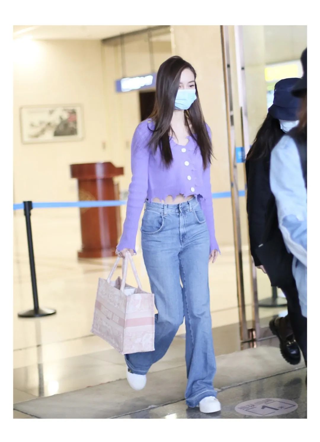 上榜理由: 「小萝莉style」上面有杨六岁,现在又来了个杨萝莉。Baby前两天在机场的一件短针织配一条阔腿裤,像极了漫画笔下的小萝莉,手里的Dior Book看起来都像是要去野餐的篮子。