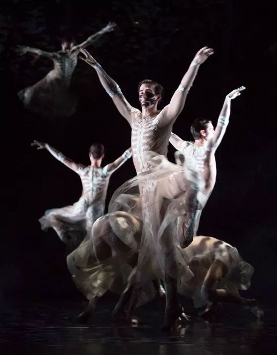 大洋彼岸, 更富现当代前卫艺术气息的New York City Ballet(纽约市芭蕾舞团) 也在近年力推设计师合作,其实验性芭蕾舞剧“Neverwhere/未曾有处”力邀充满未来感的"3D实验艺术家" 荷兰设计师Iris van Herpen,。考量了肢体语言和舞台张力,通过配合不同灯光效果,Van Herpen 以纯黑色定调,面料本身的反光效果在舞蹈和灯光过程中更增添了某种神秘色彩。