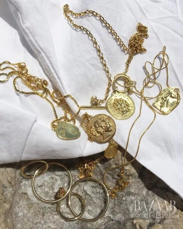 同时也希望在首饰中注入更多的涵义。设计师会把在环游世界时发现的古董钱币,经手工匠人们通过特殊工艺处理,镀上18k金层做成项链。