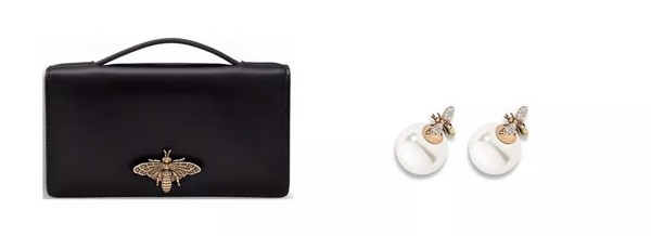 左 Dior Bee Pouches 手袋 右 Dior tribales 蜜蜂耳钉