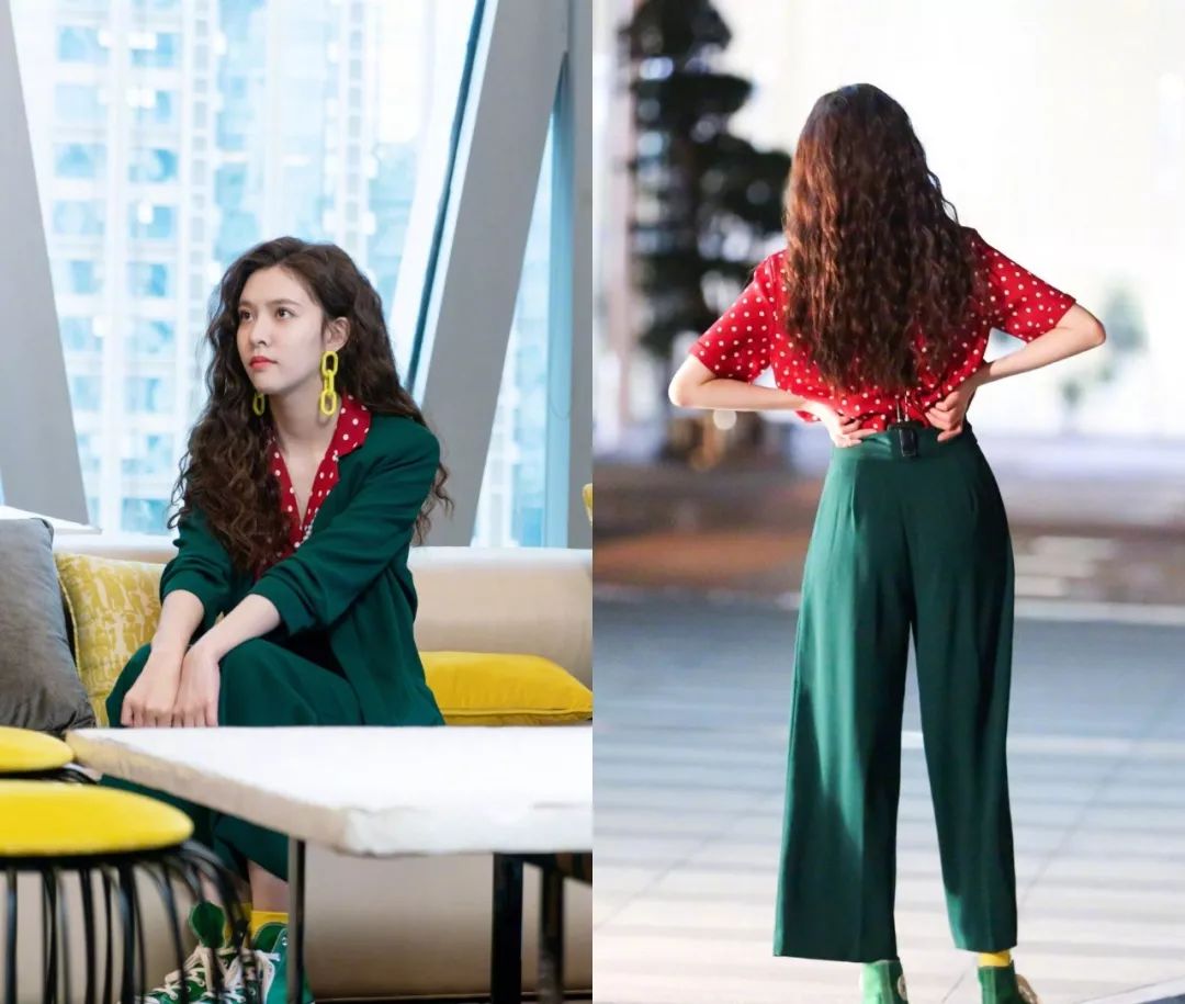 她在剧中的穿搭最大的特点就是各种鲜活亮眼,色彩缤纷的撞搭,明艳大胆的配色,新奇又可爱,被网友称为“水果系穿搭”。