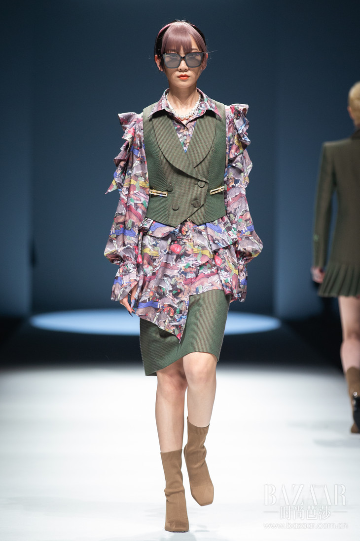 创意总监Demon着眼于诠释女性不同个性,以流畅温婉的线条,集温柔与力量之美于一体,在勾描和色彩之中,在写实与写意之间,演变出无数的设计变化。本季的秀场上,可爱的动物元素以不同形式相继出现,被注入灵魂的动物穿梭在花丛印花中。繁花揭开序幕时,以极富女性韵味的浪漫表达释放喜悦信号。狐狸和兔子在丛林中互相追逐玩耍,变化之间暗藏妙趣活力,以繁复图腾赋予时装奇幻趣意,动静之间营造女性灵气的一面,恬静之中带有跃动,甜美之间也能酷帅。蜜蜂停留在花卉之上,以经典的格纹元素为背景相映成趣,不动声色的印花图案坠入危险又迷人的梦境空间,修饰身形的剪裁,勾勒着女性对自由的无限向往。