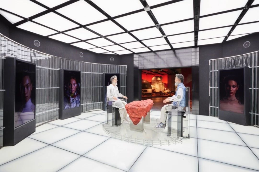 最后芭姐来到了以“未来人类”为主题的这一区域,还看到了两名科技“教授”好像在讨论着什么。空间内不仅陈列了众多品牌经典系列,也呈现了很多全新系列,