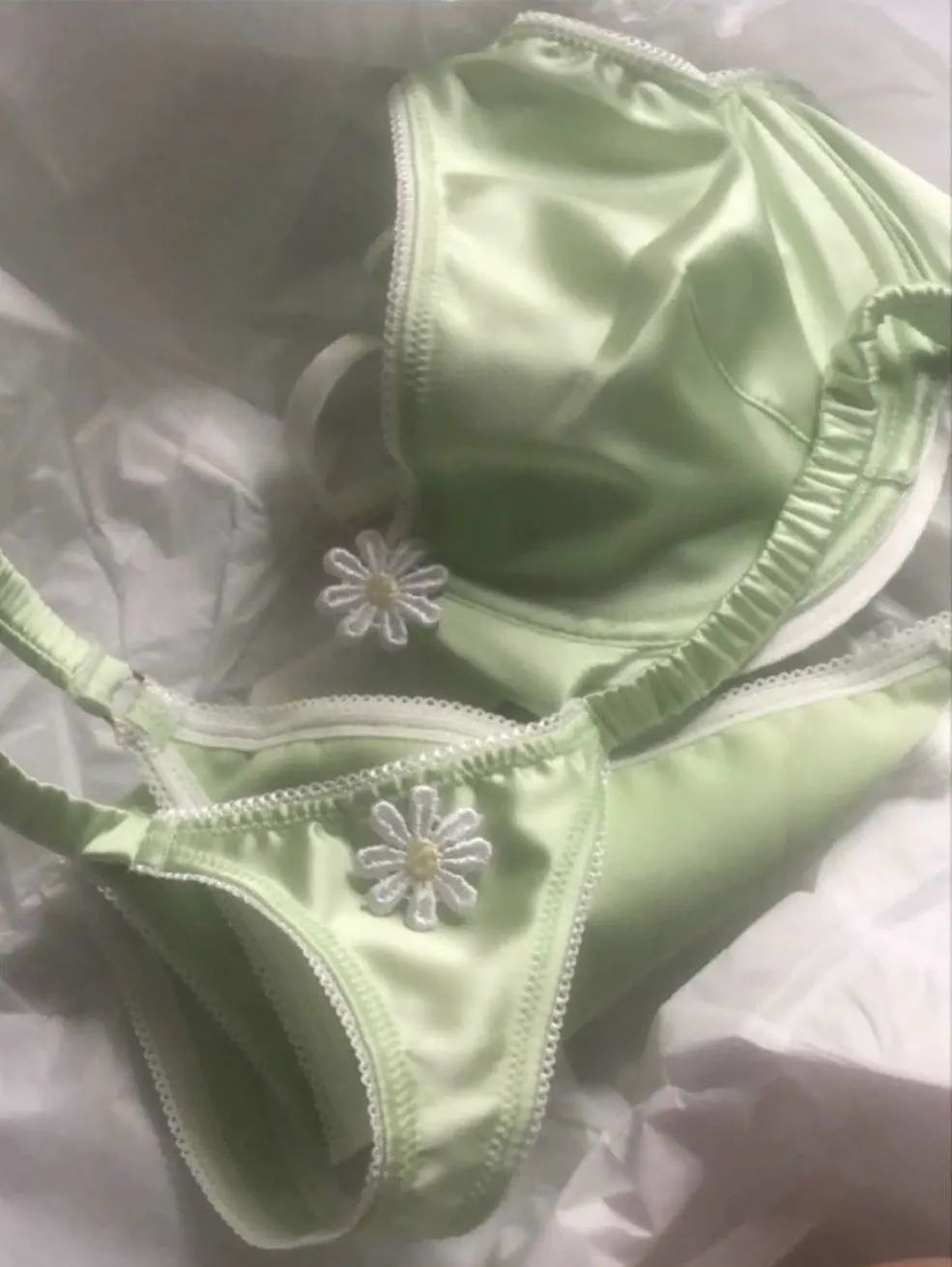 Fruity Booty Underwear则是饶有“心机”地添上了立体花朵装饰,在泛起光泽感的绿色缎面内衣上点缀一枚小雏菊,青涩懵懂。