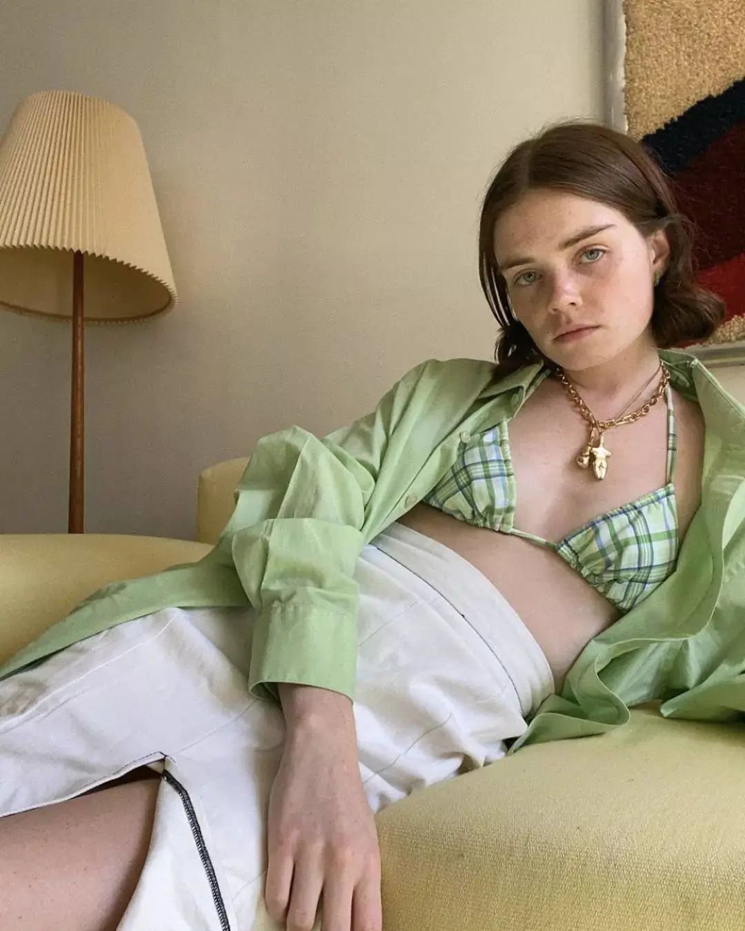让时尚博主Reese Blutstein爱不释手的这套Mirror Palais的内衣,绿色的格子清新俏皮,还有显白的效果,经典的格纹内衣也是少女们衣橱里不能缺少的一件呀!