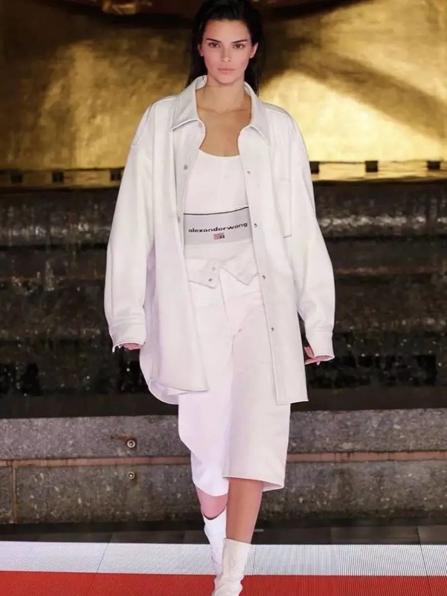 alxanderwang的这件拼接弹力带运动内衣今年也是火到不行,优质的纯棉质紧身也能舒适,品牌标志弹力带还能遮小肚子,塑造完美身材。Kendall用运动内衣搭配的敞开裤头穿法可不要太时髦,姐妹们赶紧学起来!