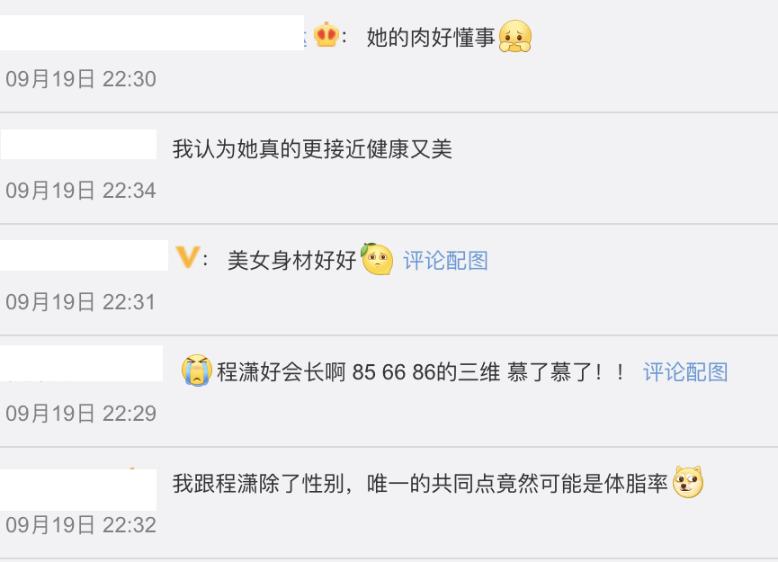 不少网友都在下面留言说,“羡慕程潇的身材”,“她的肉好懂事”。