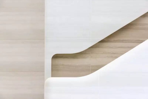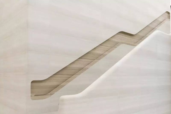 内部空间的正面、立面,使用的石材、木材和水磨石,都取用温和的色调,帮助营造稳定、舒缓的空间感受