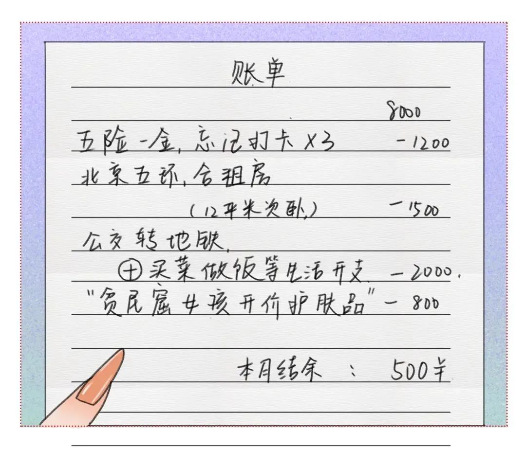 我发现一个月只能结余500块钱。