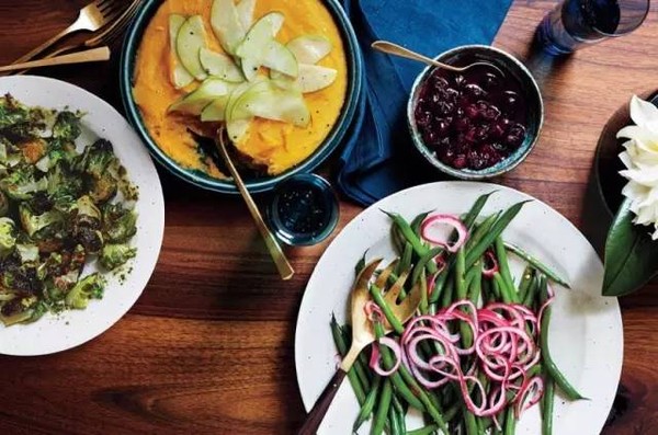 她总是根据菜市场和农场当季的新鲜蔬菜、水果和鲜花组合出不同的菜。