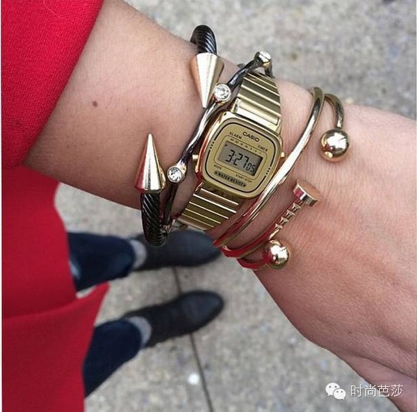 你盒子里的首饰都能成为这只电子表的好朋友,不管细链或铆钉、还是金属和水钻,都能完美融合在一起,百搭程度让你想不到!不信?来看咯~