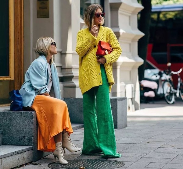 穿够了秋冬暗色系的衣服,上半身或下半身总要有一处亮眼的“幺蛾子”才能满足渴望春天的内心。