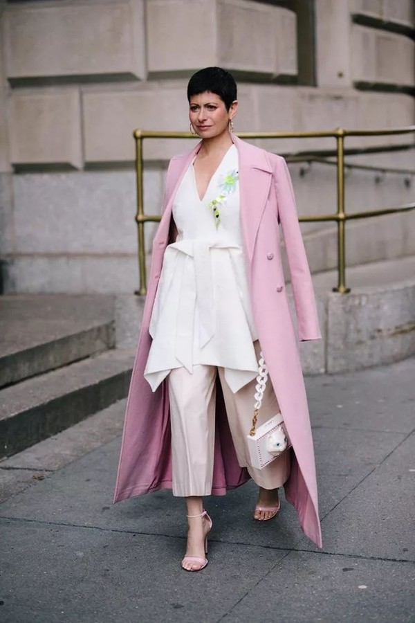 颜色轻快鲜艳的修身西装套装是极佳的选择!配以简单的内搭和经典款的外套,保暖和时髦两不误,室内室外都能保持优雅有型。