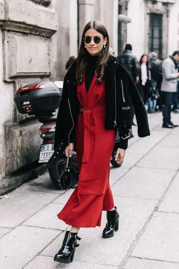 即使是一身酷黑,套上一条颜色亮眼的半裙,也能让人迅速跳脱寒冬!