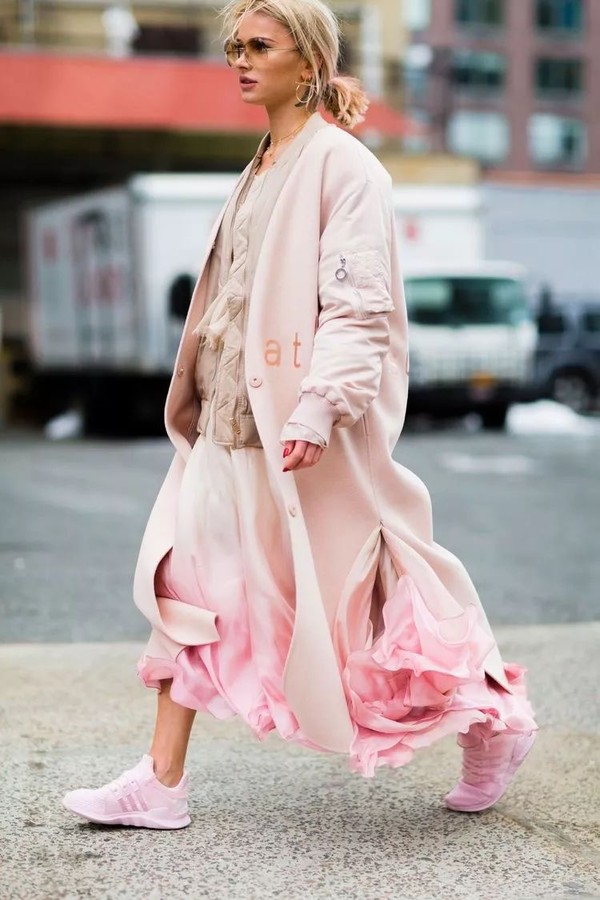 也可和颜色跳跃的外套来一场大碰撞混搭,赚足回头率。