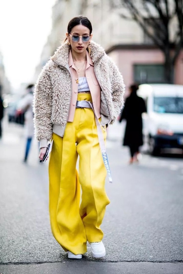 亮色的长裤也在甜美之中不失洒脱,让奔向春天的步伐更加轻快。
