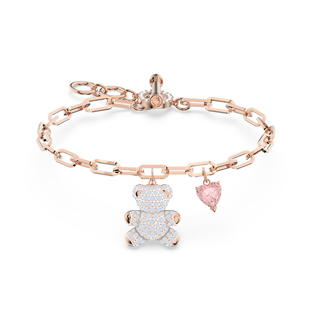 这款SWAROVSKI TEDDY手链采用 3D 设计,缀以一颗心形粉色仿水晶。小熊以施华洛世奇经典仿水晶低温陶瓷镶嵌技术打造,令其全方位闪耀着明亮的光彩。可为日常装扮增添一抹俏皮且梦幻的色彩,也是赠予重要人士的绝佳礼物。