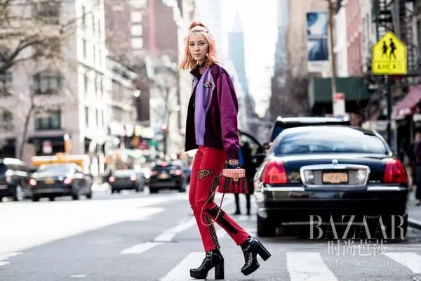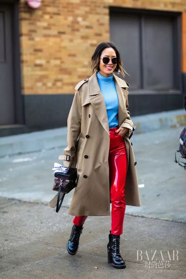 挂上腰包强调小蛮腰,穿上细跟靴子拉长腿型,都是穿漆皮长裤的显瘦小心机~