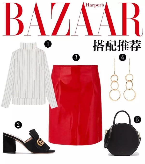 漆皮短裙强烈的酷感,以设计优雅的衬衫中和,是淑女的小性感。