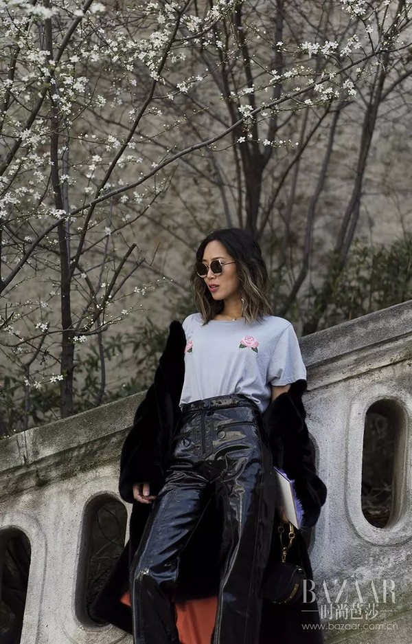今年最In的复古风T恤,搭配漆皮短裙比其他单品都更为抢眼~