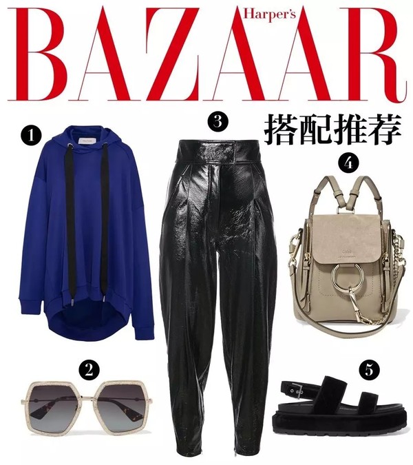 ▼ 漆皮长裤 + 卫衣,个性女孩Look