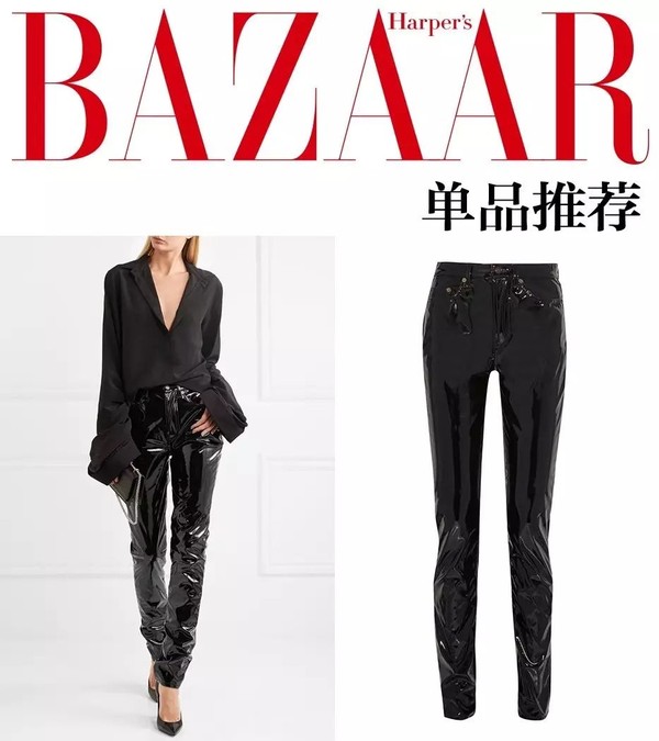 虽然漆皮长裤的强烈时尚感,不是每个人都能穿得好的。搭配设计简单的上衣和鞋子就够性感啦~