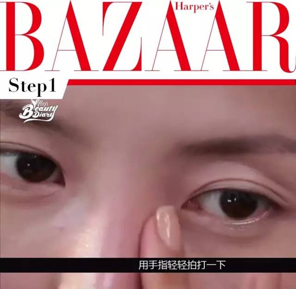 为了不让眼妆看起来和没画没两样,要突出眼线。选择没有珠光的黑色眼线笔来强调眼线,先画中间的内眼线,再将睫毛根部一格一格填满,然后用手指晕开。眼尾部分的眼线稍微往下垂,逐渐加粗放大眼睛。