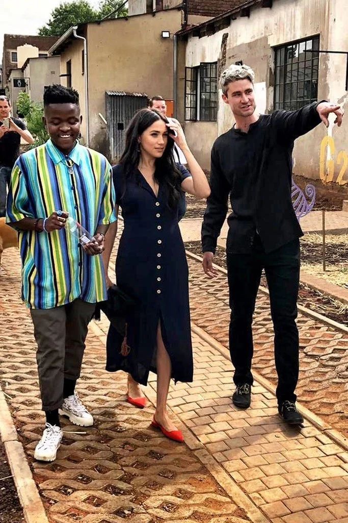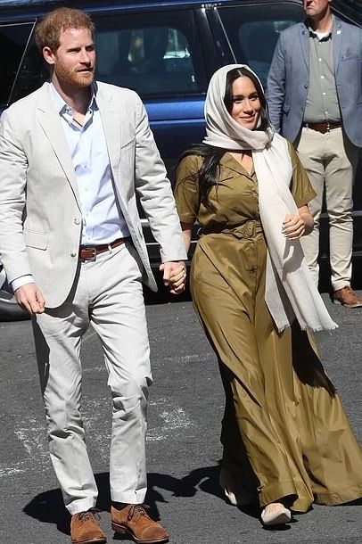 比如最近哈里王子与梅根王妃牵手同游南非清真寺时,就穿了很火的小众品牌Saund的橄榄绿连衣裙,售价约为2300元。